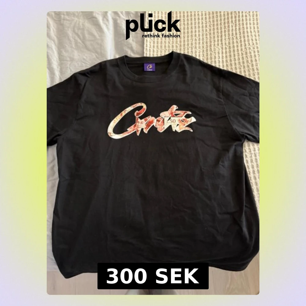 Svart t-shirt i bomull från Corteiz med stort grafiskt tryck i vitt och rött på bröstet. Klassisk passform med rund hals och korta ärmar. Perfekt för dig som gillar streetwear och vill sticka ut med en snygg logga.