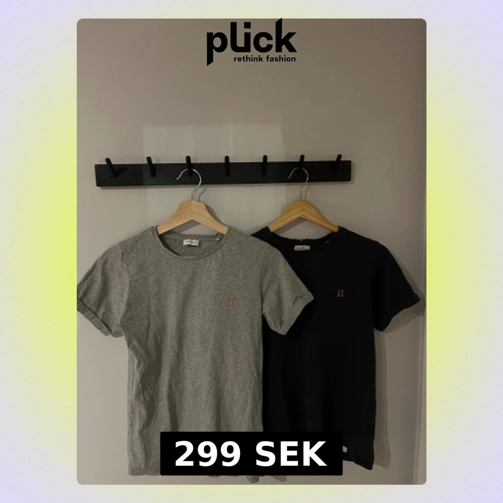 Två stilrena t-shirts från Les Deux i storlek 158/164. Ena är grå och den andra mörkblå. Diskret broderad II-logga i orange på bröstet. Sköna i mjuk bomull, perfekta för en chill look.