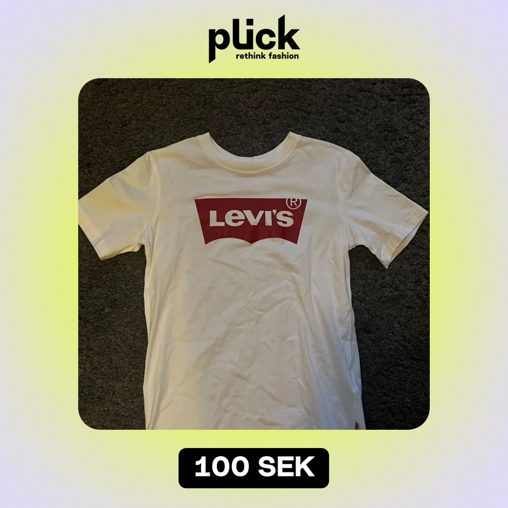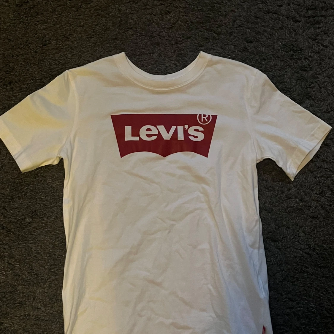 Säljer en klassisk vit t-shirt från Levi's med deras ikoniska röda logga på bröstet i storlek 152. Perfekt för en avslappnad stil och passar till nästan allt. T-shirten har en normal passform och korta ärmar. Perfekt för sommardagar eller som basplagg året runt. Aldrig använd men prislappen finns inte kvar.