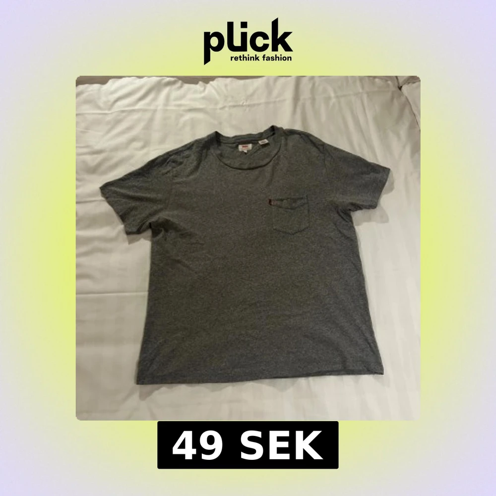 En enkel och stilren grå t-shirt från Levi's i storlek L. T-shirten har en klassisk passform, rund halsringning och en liten bröstficka med den ikoniska röda Levi's-taggen. Perfekt till jeans eller shorts för en avslappnad look.