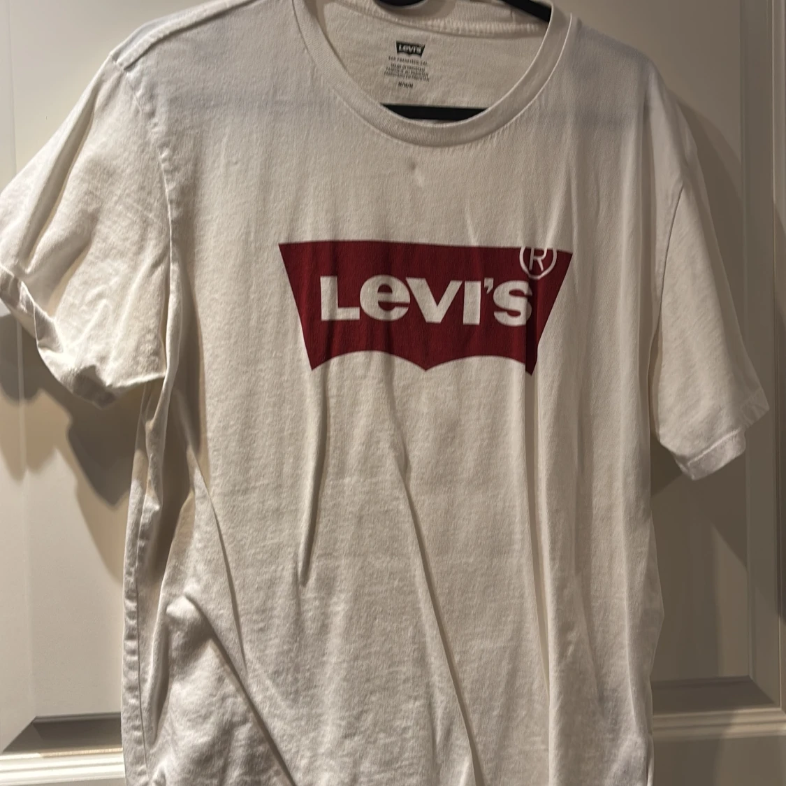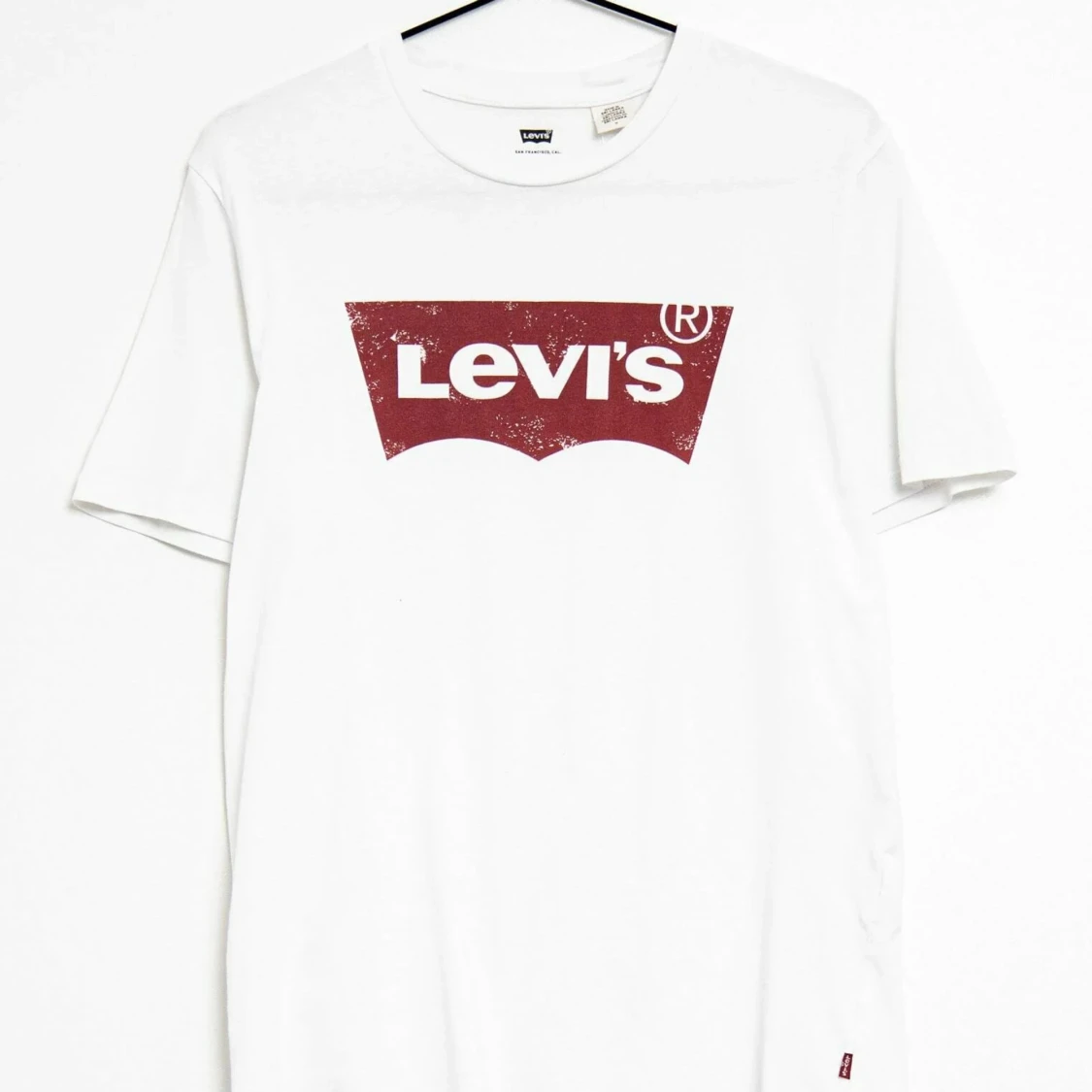 Vit t-shirt från Levi's med det klassiska röda logotyptrycket på bröstet. Perfekt för en avslappnad stil.