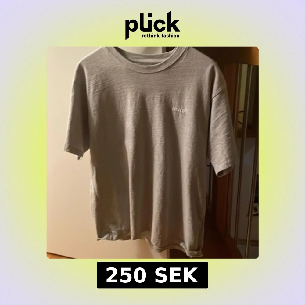 Säljer en stilren grå t-shirt från Levi's. Den har en klassisk passform med korta ärmar och rund hals. Perfekt för en avslappnad look. Aldrig använd då den inte passade i storlek