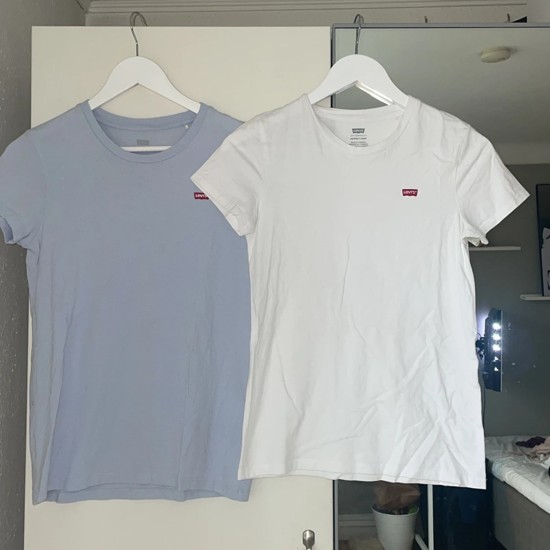 En babyblå och en vit Levis T-shirt i storlek XS, helt oanvända🩷 säljer båda tillsammans för 150 kr