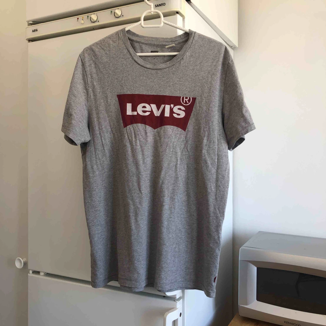 äkta levis t shirt i fint skick! kommer tyvärr inte till användning då den är lite för lång för mig som är kort. passar L också eller om man helt enkelt är lång, vill ha lite oversize S/M!