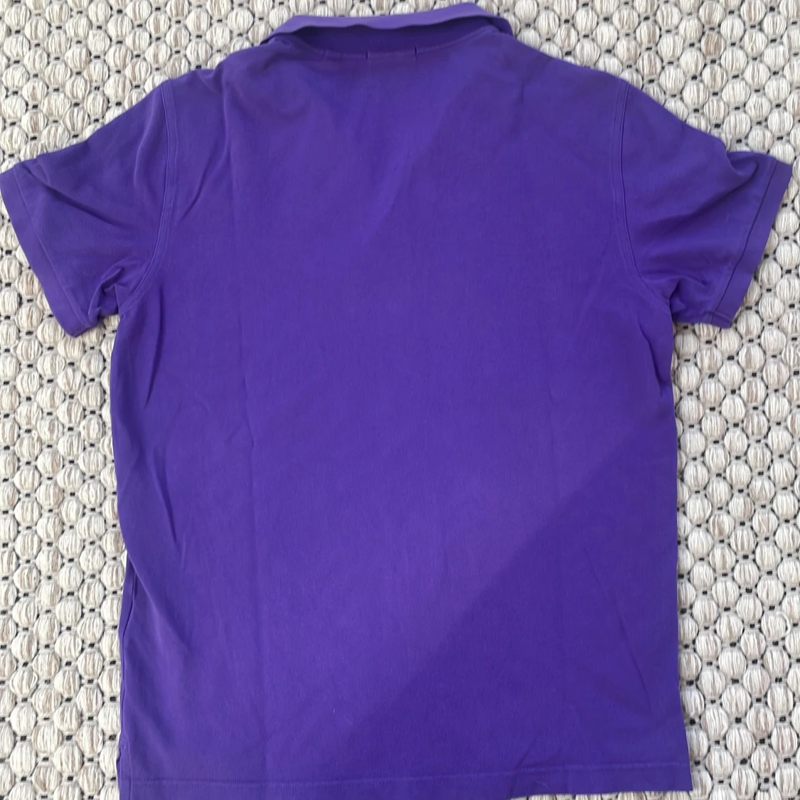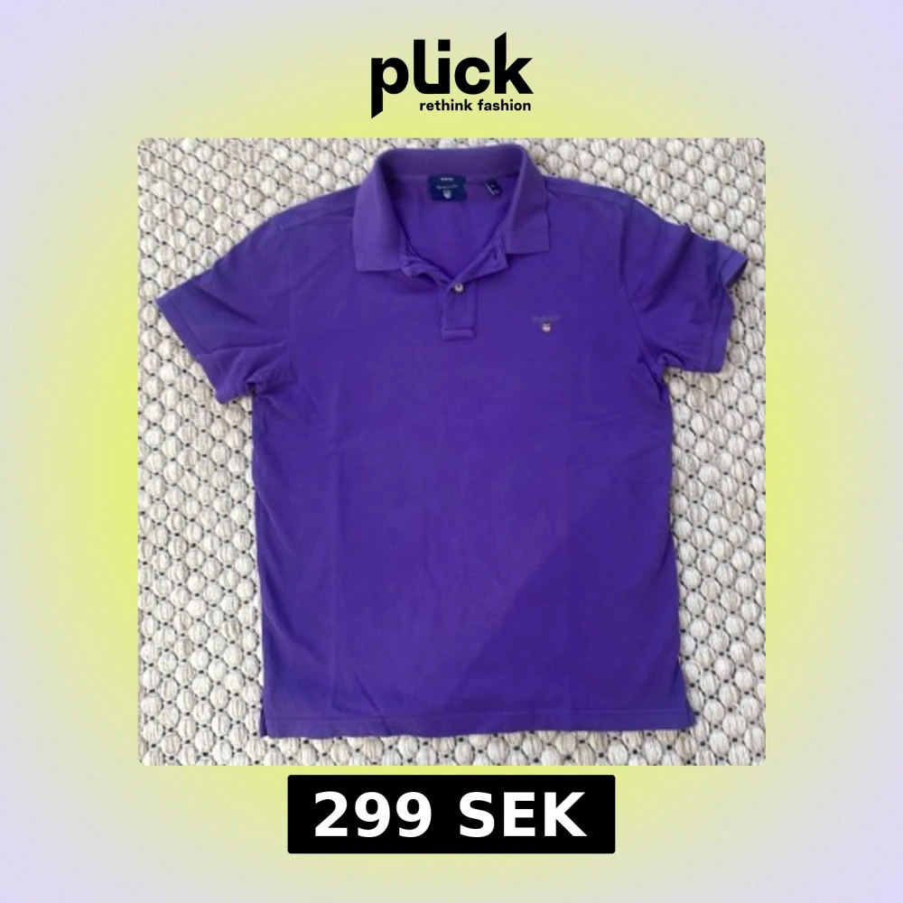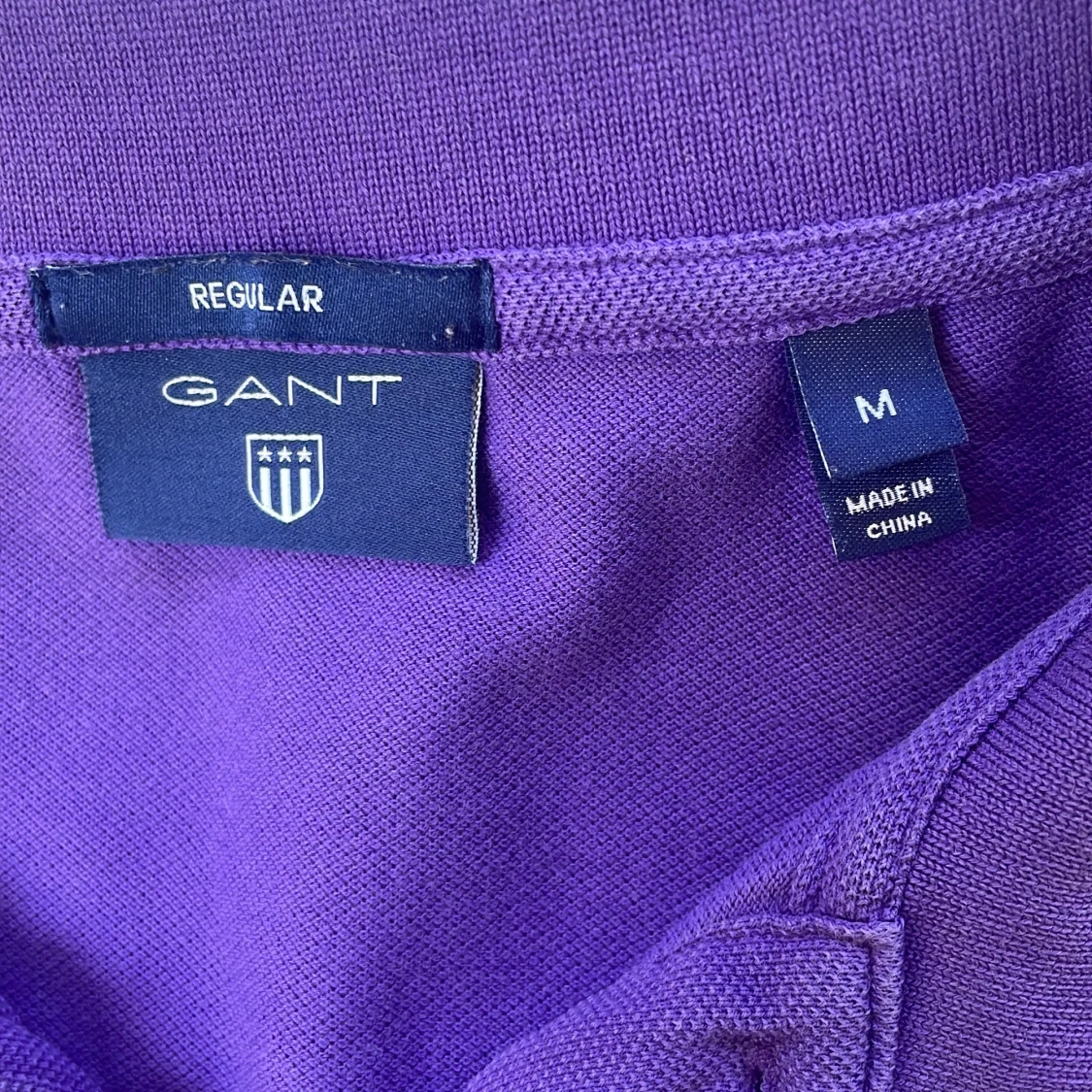 Säljer en lila piké t-shirt från GANT i klassisk modell med krage och knappar. T-shirten har korta ärmar och broderad GANT-logga på bröstet. Perfekt för en stilren och avslappnad look. Storlek:M.