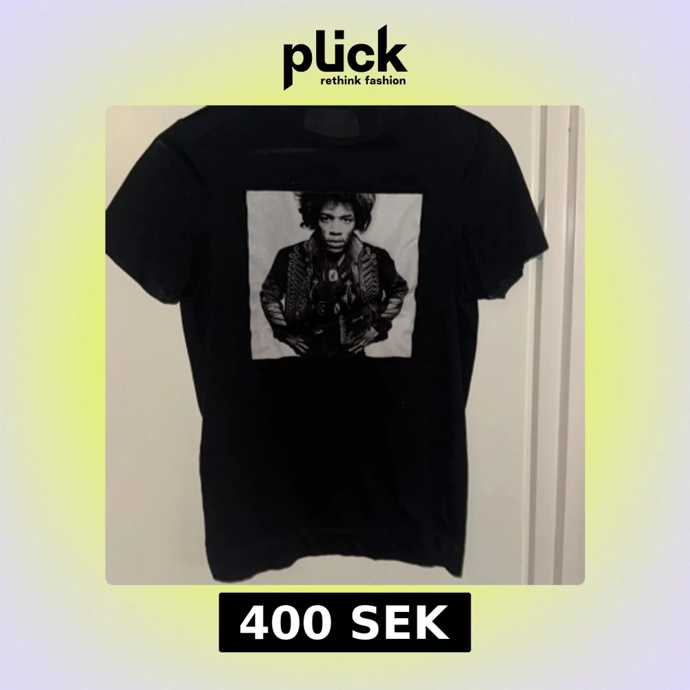 Svart t-shirt från Limitato med ett stort svartvitt tryck av Jimi Hendrix på bröstet. Klassisk rund hals och korta ärmar. T-shirten är gjord i mjuk bomull och har en clean look med fokus på det ikoniska motivet framtill. Storlek XS och använd 1 gång! Limited edition finns få!
