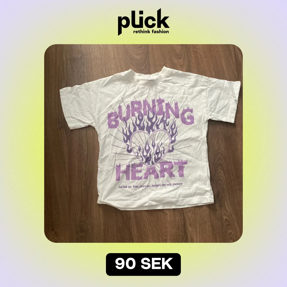 Cool vit t-shirt från Lindex Kids med ett stort lila tryck som säger 'Burning Heart' och ett hjärta med flammor. T-shirten är i bomull och har korta ärmar. Passar bra till både vardag och lek.
