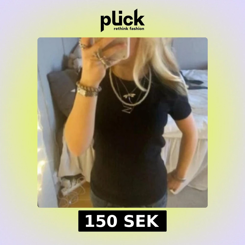 Säljer en stilren svart ribbad t-shirt med korta ärmar. Perfekt för en enkel och snygg look. Passar bra till jeans eller kjol.