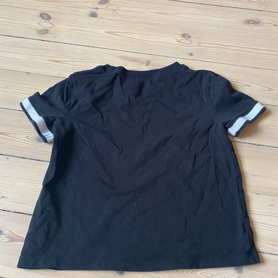 En svart T-shirt med vita ärmar:)