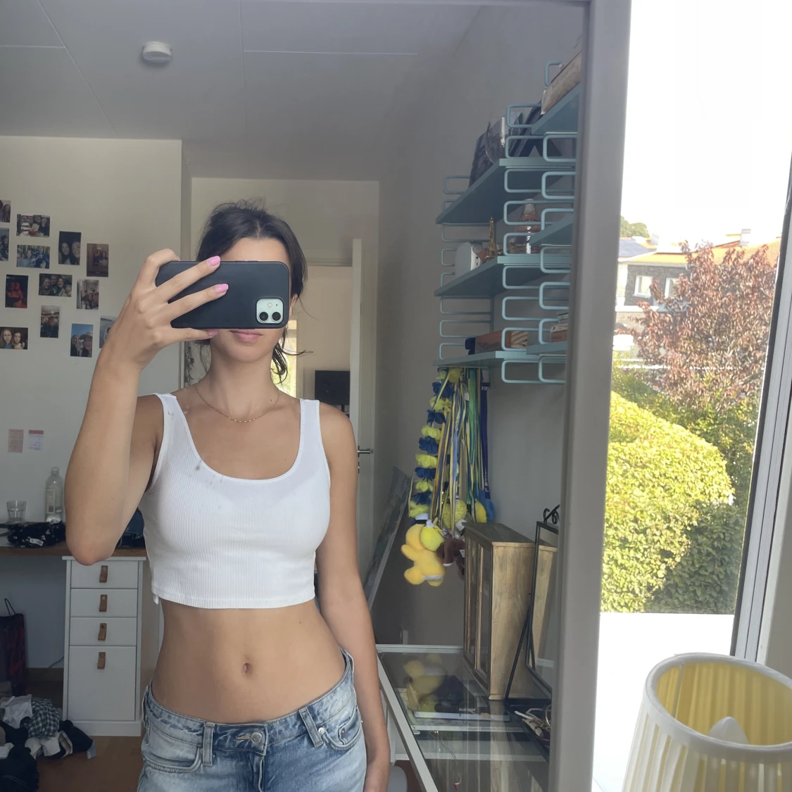 Vitt ribbat croppat linne från Gina. Vid snabb affär kan pris diskuteras