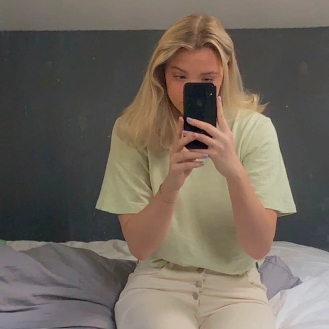 ljusgrön lite oversized tshirt i ett lite tjockare linne material från & other stories! frakt 50kr