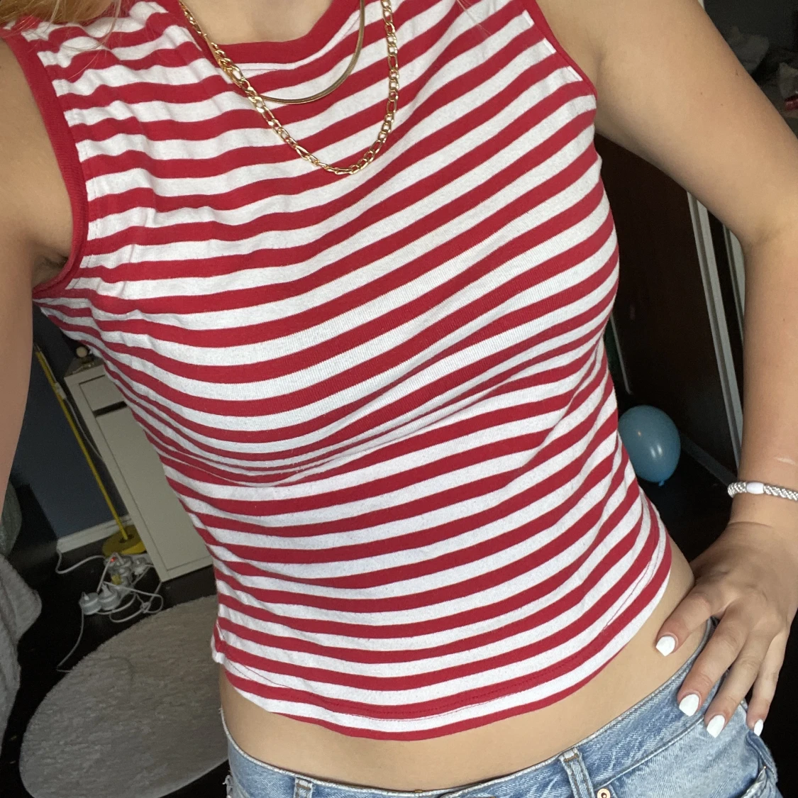 Röd och vit randigt linne