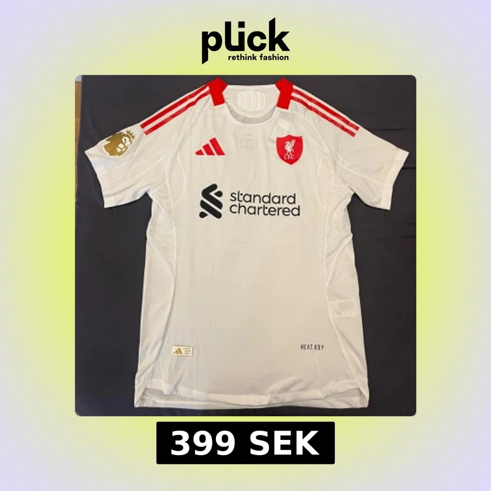 Liverpool FC bortatröja säsongen 25/26 med Diogo Jota #20. Vit med röda detaljer och tre röda Adidas-ränder på axlarna. Broderat LFC-märke på bröstet, Premier League-märke i guld på ärmen och Standard Chartered-tryck på magen. Tillverkad i ventilerande polyester.