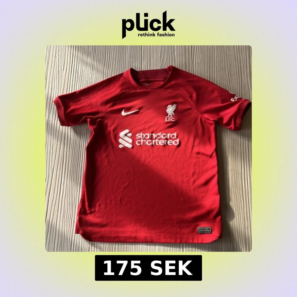Säljer en röd Liverpool FC matchtröja från Nike med broderad klubbmärke och sponsortryck på bröstet. Tröjan är tillverkad i Dri-FIT-material som andas och har korta ärmar. Perfekt för dig som vill visa ditt stöd för LFC på match eller träning. Storlek 147-158. Och den är äkta.