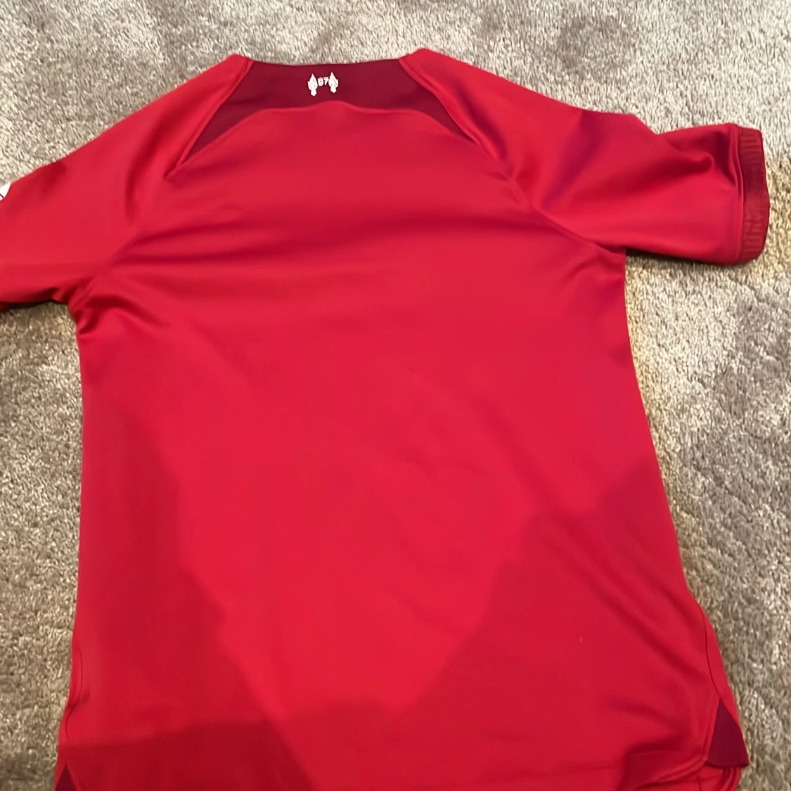 Liverpool FCs officiella matchtröja från Nike i rött med klubbmärke och sponsortryck på bröstet. Tillverkad i Dri-FIT-material som andas och håller dig sval. Klassisk passform med rund hals och korta ärmar. Perfekt för dig som vill visa ditt stöd för LFC.