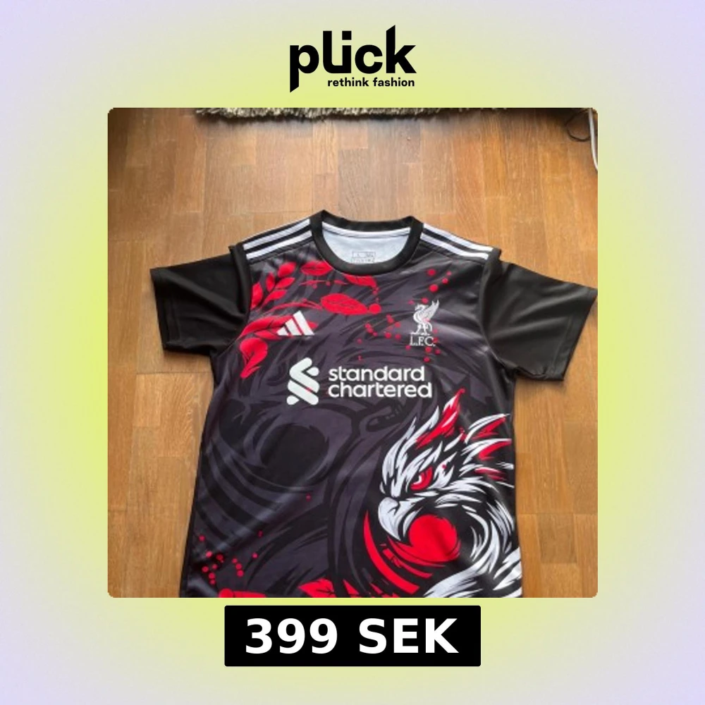 Snygg Liverpool fotbollströja från Adidas i svart med röda och vita detaljer. Unikt drakmotiv och röda blad på framsidan, vita Adidas-ränder på axlarna och klubbmärke på bröstet. Tillverkad i lätt och ventilerande material.