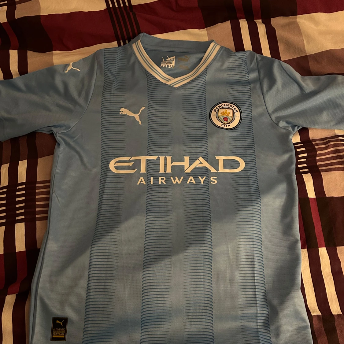 Säljer en ljusblå Manchester City fotbollströja från Puma. Storlek S