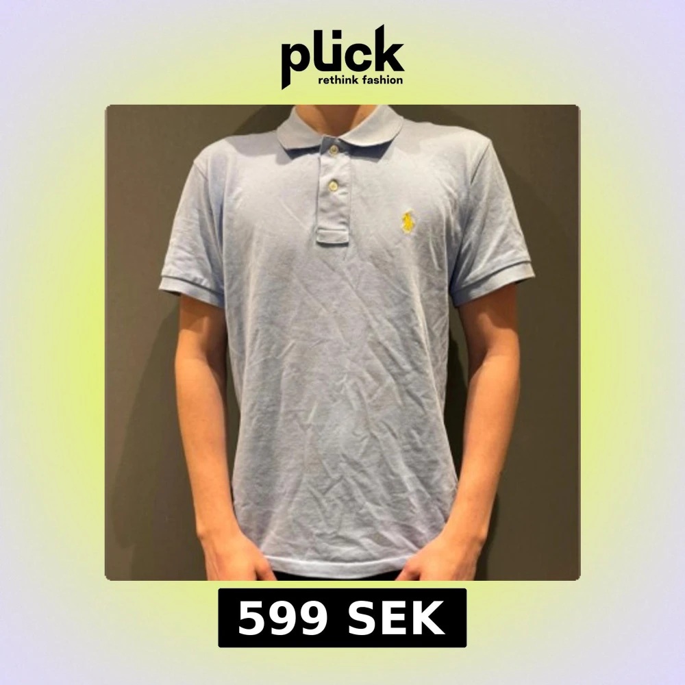 Snygg ljusblå pikétröja från Ralph Lauren med klassisk krage, korta ärmar och två knappar framtill. Ikoniska gula loggan broderad på bröstet. Perfekt för en clean och stilren look.