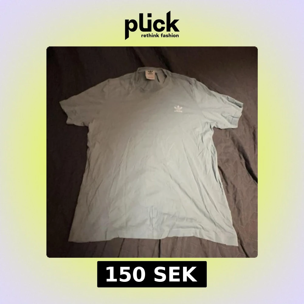 Säljer en ljusblå t-shirt från Adidas med det klassiska logotypen broderad på bröstet. Perfekt för en avslappnad stil. T-shirten är kortärmad och tillverkad i mjukt material. L: 69, B: 42
