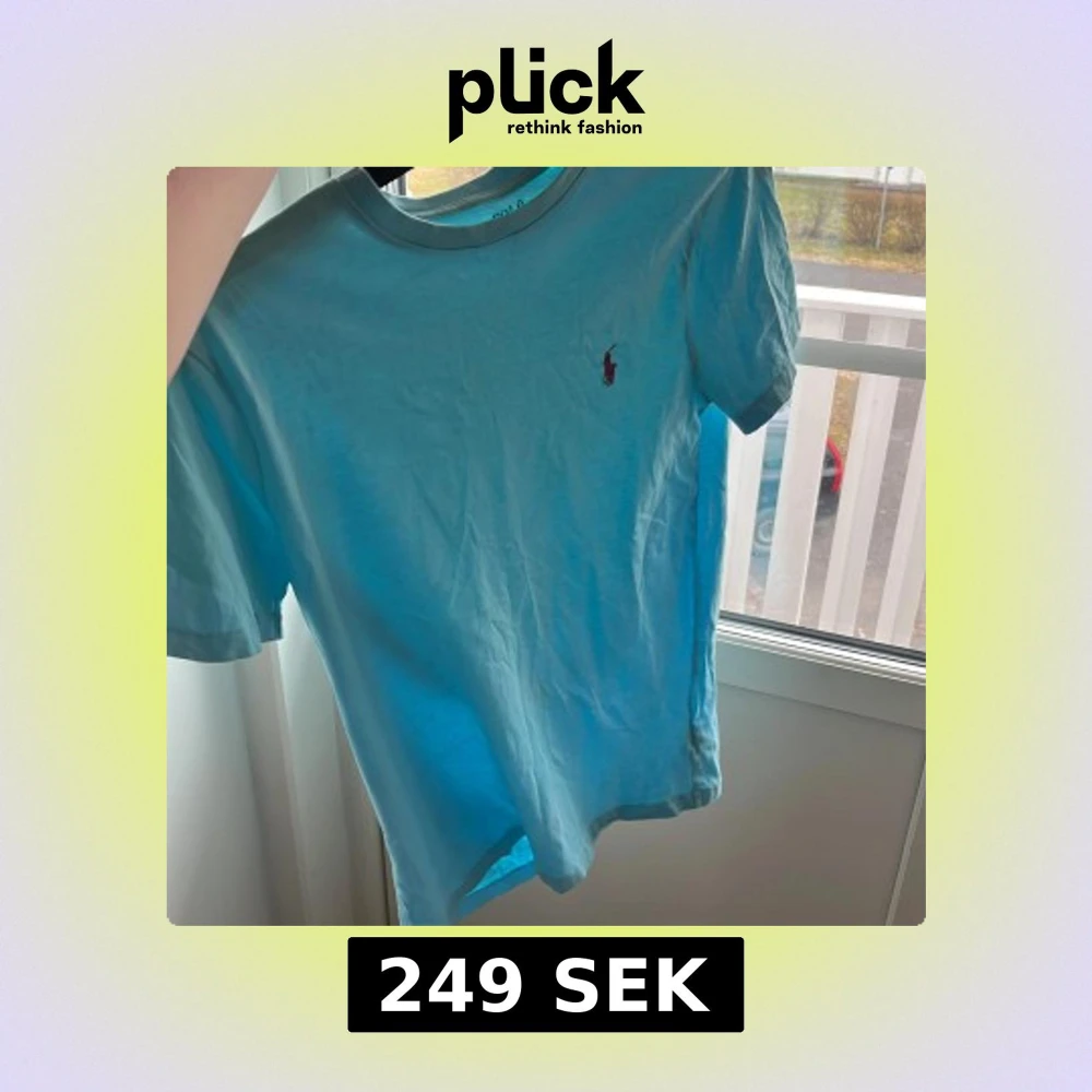 Säljer en ljusblå t-shirt från Polo Ralph Lauren med en liten broderad logga på bröstet. T-shirten är kortärmad och perfekt för en avslappnad stil. Passar bra till jeans eller shorts för en cool look.
