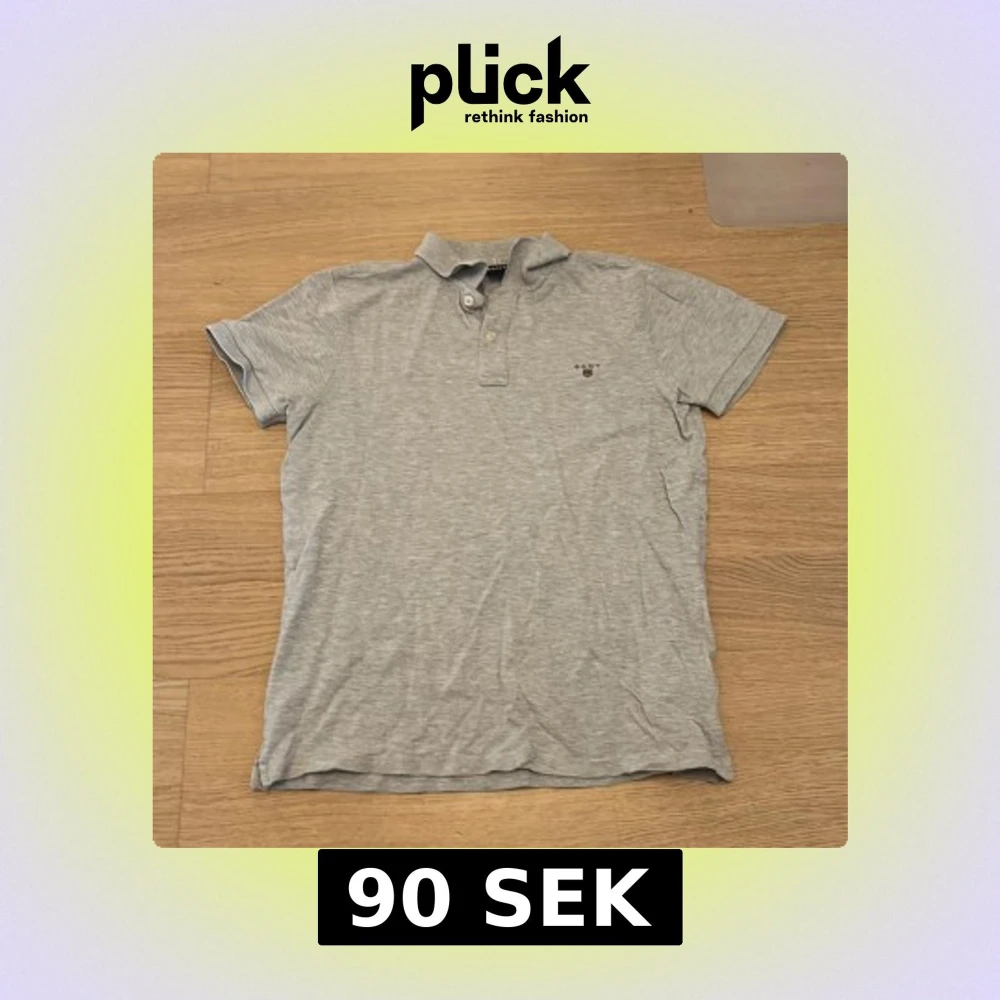 Säljer en ljusgrå pikétröja från GANT med klassisk krage och knappar framtill. Tröjan har korta ärmar och en liten broderad GANT-logga på bröstet. Perfekt för en stilren och avslappnad look.