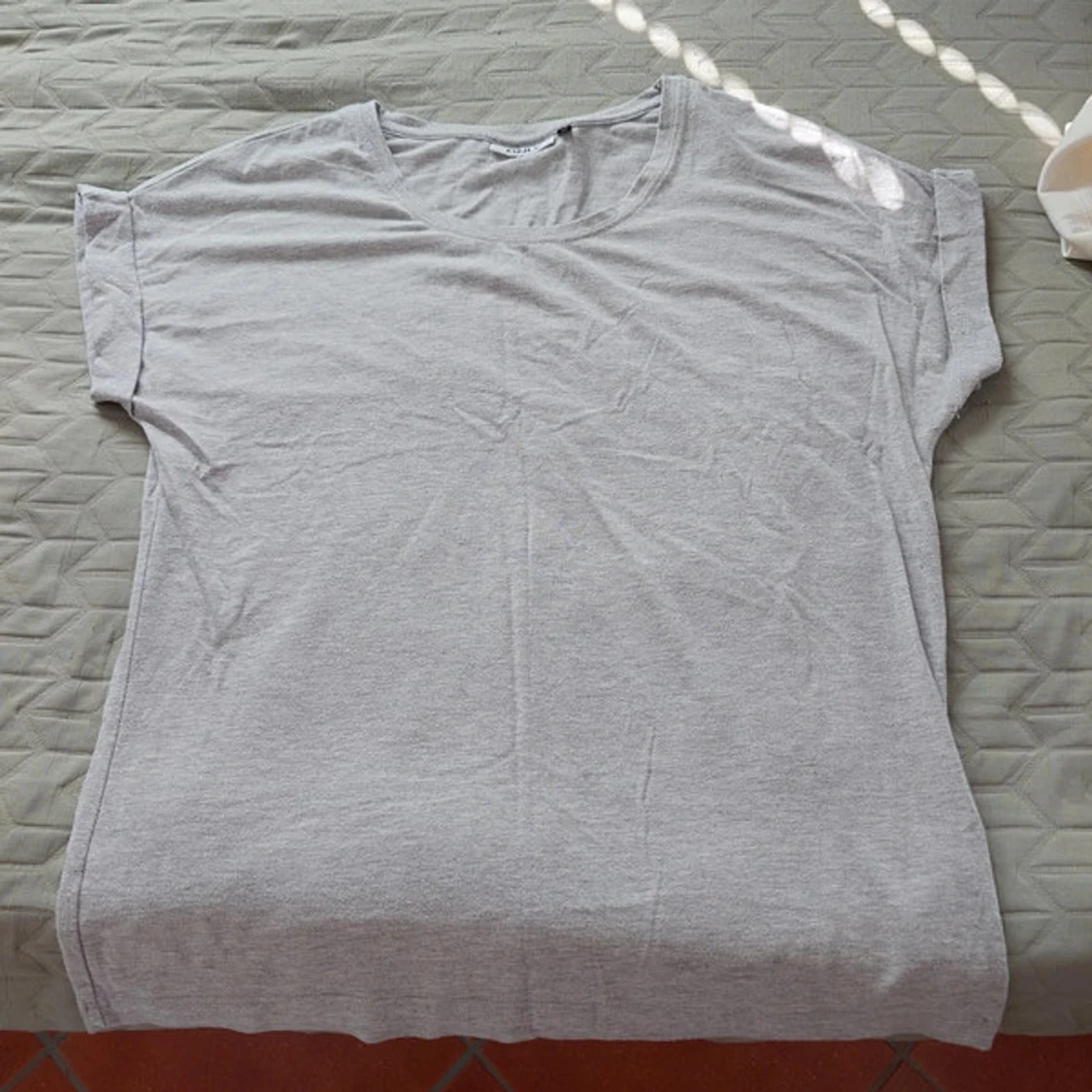 En basic ljusgrå t-shirt från ONLY i storlek XS. Modellen har rund halsringning och korta ärmar. T-shirten är tillverkad i mjuk bomull och har en loose passform som gör den skön att bära. Perfekt för en chill och enkel stil.