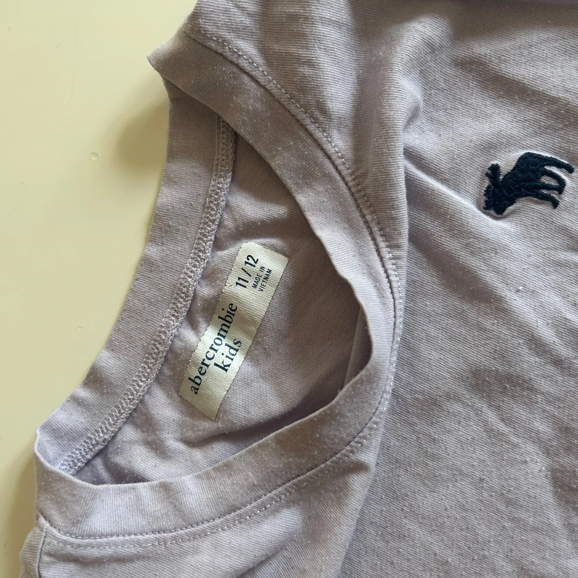 En stilren ljuslila t-shirt från Abercrombie Kids i storlek 11/12 år med klassisk rund hals och korta ärmar. T-shirten är gjord i mjuk bomull. Perfekt för en chill och enkel look. Man ser att den är använd då den är lite nopprig.