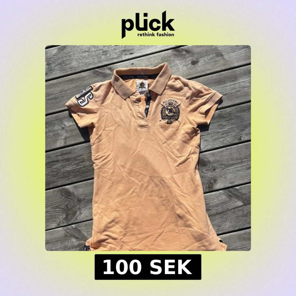 Snygg ljusorange pikétröja från Gina Tricot, Falsterbo Horse Show edition. Kortärmad med klassisk krage och knappar framtill. Broderad logga och emblem på bröstet, samt stor siffra på ärmen. Mjuk bomull som är skön mot huden. Perfekt för dig som gillar ridning och sportig stil.