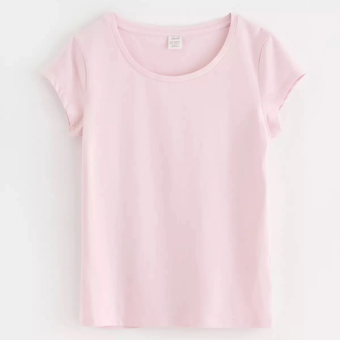 Enkel och stilren ljusrosa t-shirt från Lindex med rund halsringning och korta ärmar. Tillverkad i mjuk bomull som känns skön mot huden. Perfekt att matcha med jeans eller kjol för en clean look.