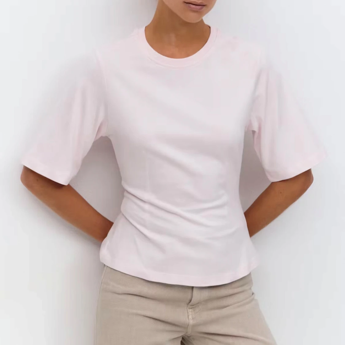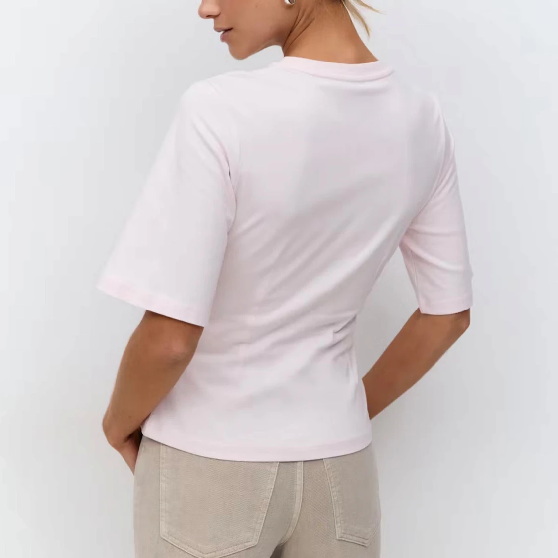 Enkel och stilren rosa t-shirt från Gina med loose fit och svagt figursydd. T-shirten har rund halsringning och är gjord i mjuk bomull, perfekt för en chill och avslappnad look.