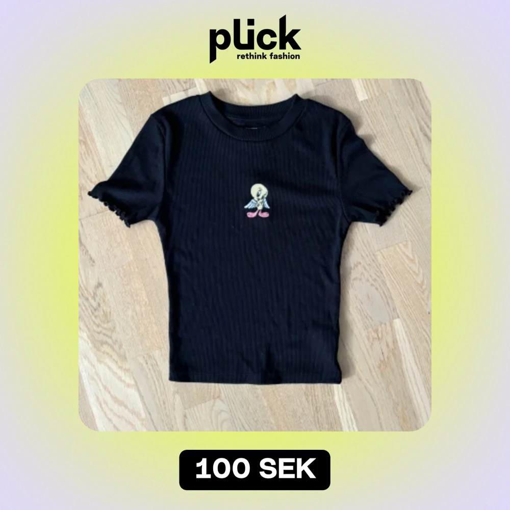 Tröja med ”volanger” på ärmarna. Looney Tunes broderat på. Ribbad. Supergullig men aldrig kommit till användning😇