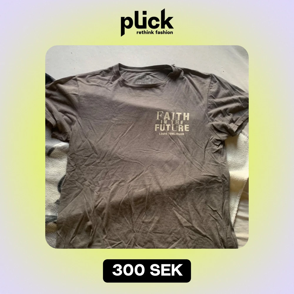 Säljer t-shirt från Louis Tomlinson med texten 'Faith in the Future' på framsidan och 'World Tour 2023' med turnédatum på baksidan. T-shirten är i bomull och har en liten reva i armhålan inte alls synlig . Perfekt för fans av Louis Tomlinson!