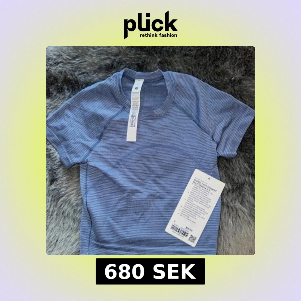 Superskön blå croppad t-shirt från Lululemon med diskreta ränder och rund hals. Fick den av mina föräldrar när de hade varit i usa, kunde tyvärr inte lämna tillbaks 🫶🏼 HELT OANVÄNDA!!T-shirten är kortärmad och har en tight passform, perfekt för träning.Materialet är mjukt och stretchigt, vilket gör den riktigt bekväm att bära.