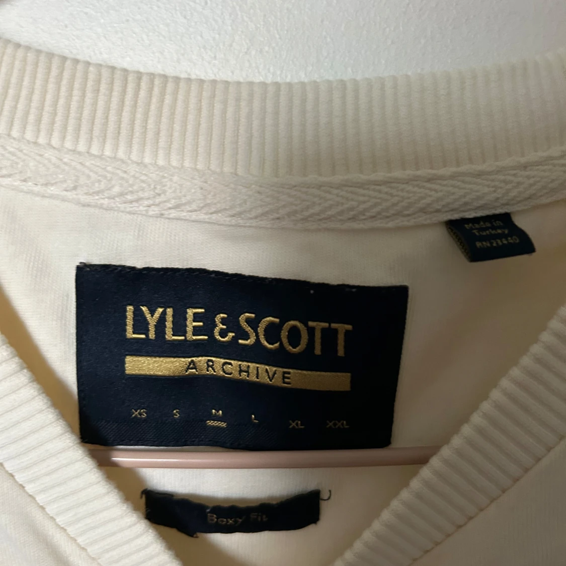 Vit t-shirt från Lyle & Scott Archive med boxy fit. T-shirten har korta ärmar, rund hals och broderad logga i gult på bröstet samt svart text. Tillverkad i mjuk bomull, perfekt för en chill och clean look.