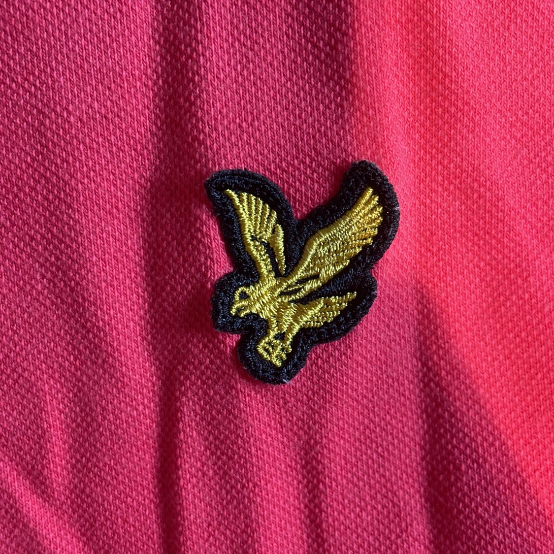 Fräsch Rosa/Röd pikétröja från Lyle & Scott i ekologisk bomull. Klassisk krage, korta ärmar och knäppning med tre vita knappar. På bröstet sitter den ikoniska broderade gula örnen. Perfekt för dig som gillar stilrena och färgglada plagg. Storlek: S
