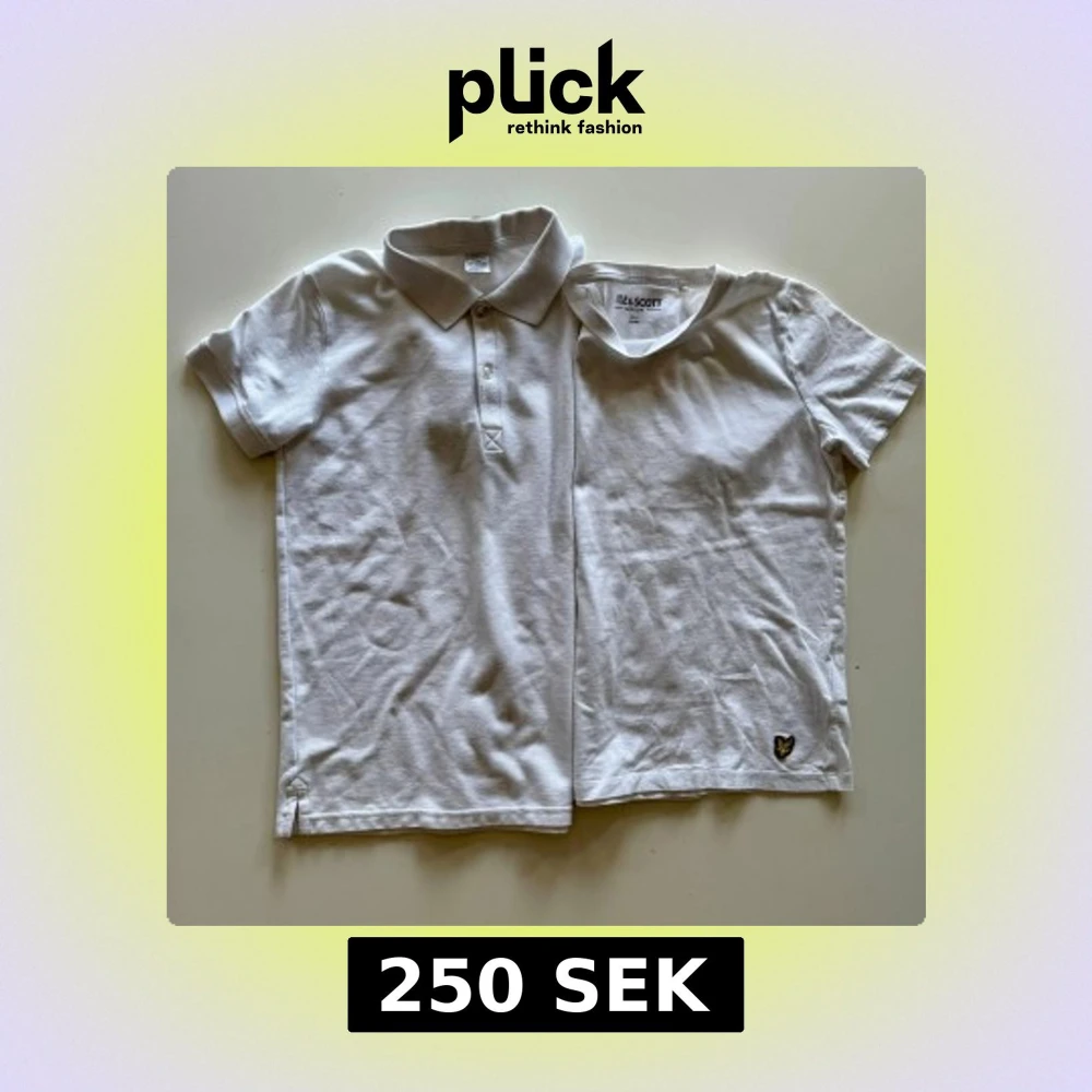 Två vita t-shirts, en klassisk polo med krage och knappar samt en vanlig t-shirt med rund hals och Lyle & Scott-logga nertill. Båda är kortärmade och i mjuk bomull, perfekta för en clean och enkel stil.