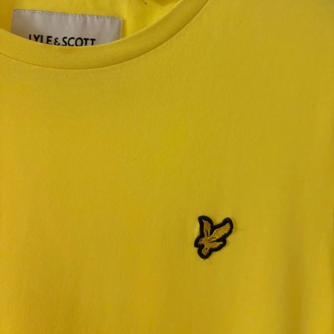 Fräsch gul t-shirt från Lyle & Scott i ekologisk bomull. Klassisk passform med rund hals och korta ärmar. På bröstet sitter den ikoniska broderade fågel-loggan. Perfekt för dig som vill sticka ut med färg och stil.