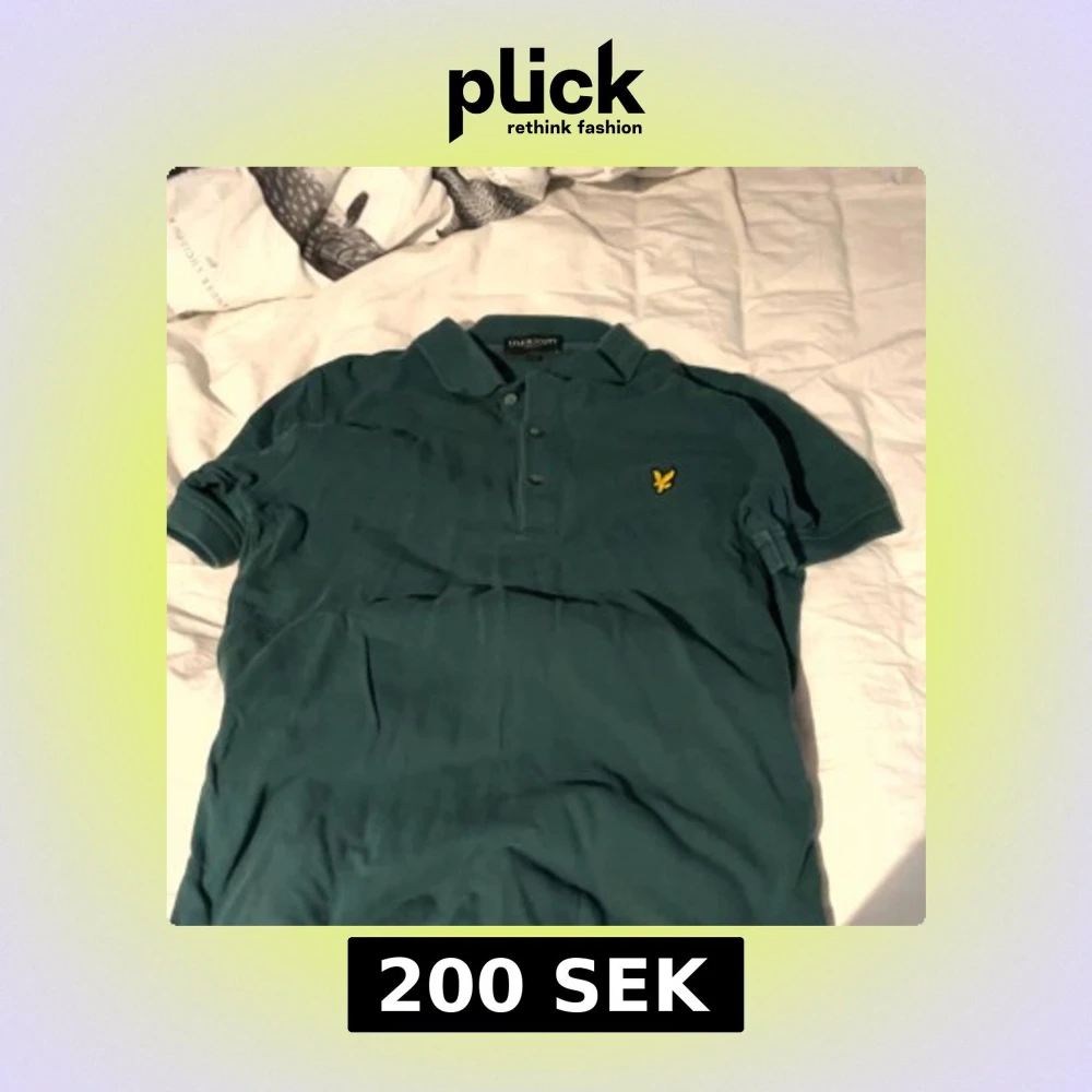 Snygg grön piké från Lyle & Scott i storlek S. Klassisk krage, tre knappar och den ikoniska gula fågeln broderad på bröstet. Perfekt för dig som gillar stilrena och sportiga plagg. T-shirten är gjord i mjuk bomull och har korta ärmar.