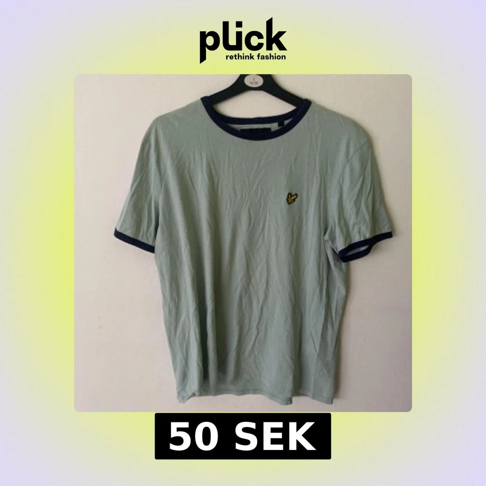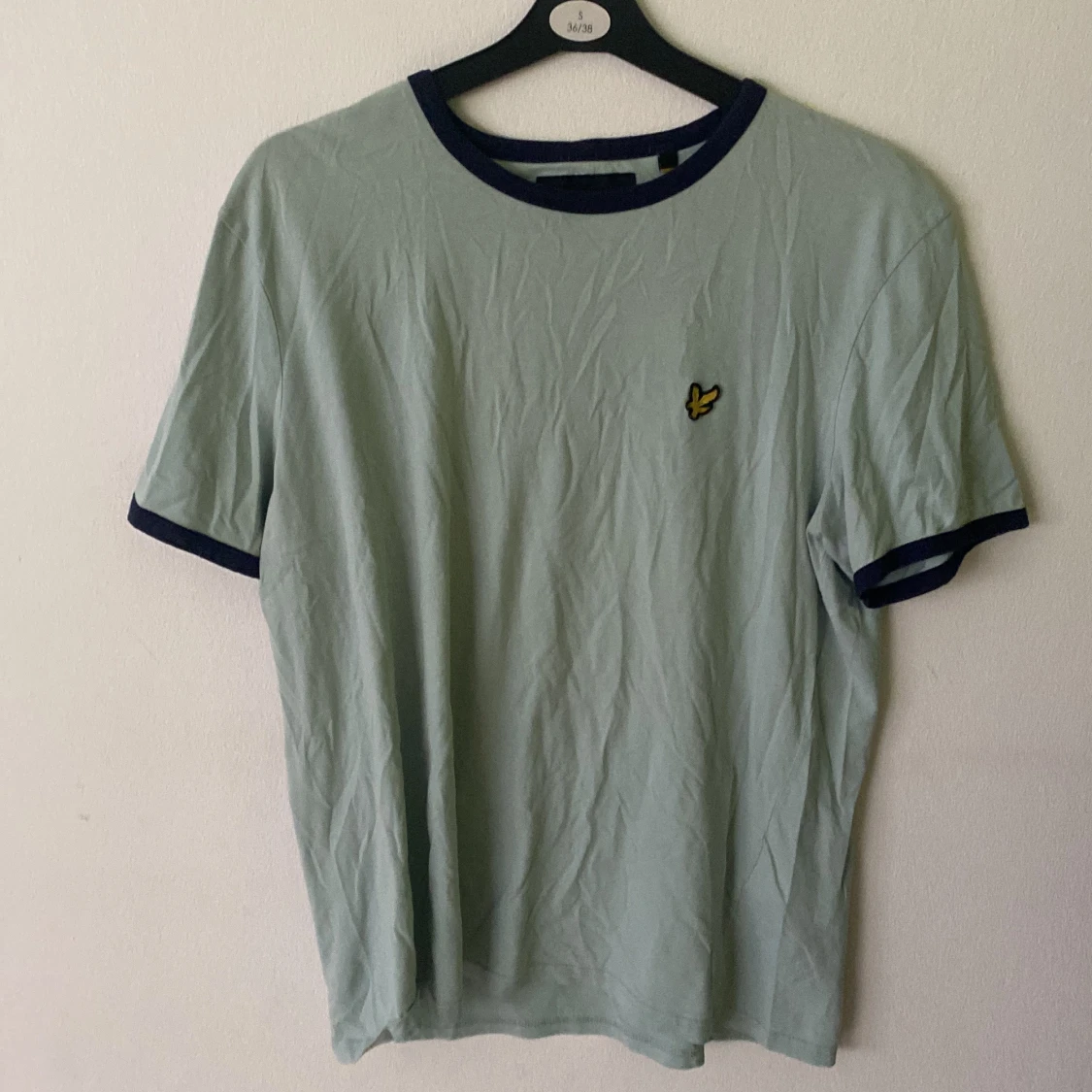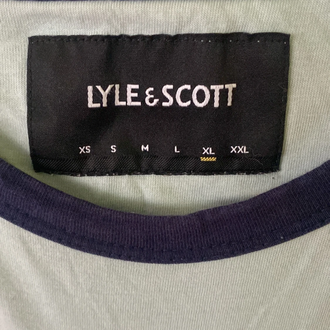 Ljusgrön t-shirt från Lyle & Scott i bomull med mörkblå kanter vid hals och ärmslut. Klassisk gul logga broderad på bröstet. Enkel och stilren modell med normal passform, perfekt till jeans eller shorts.