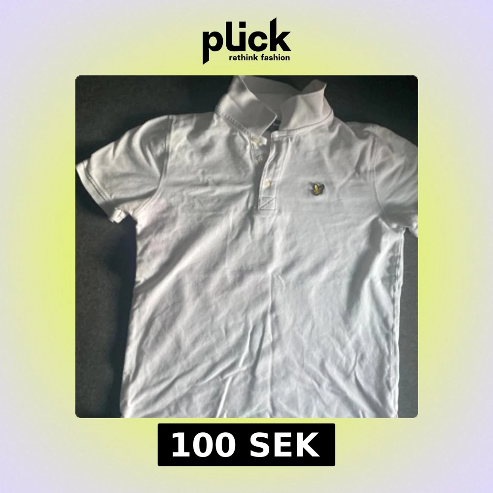 Säljer en stilren vit pikétröja med korta ärmar och en liten logga på bröstet. Tröjan har en klassisk krage och knappar framtill. Perfekt för en avslappnad men ändå snygg look.