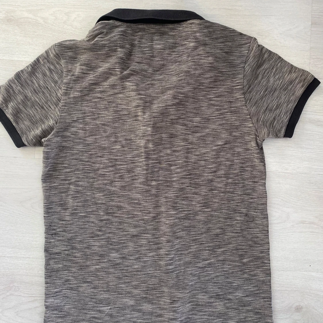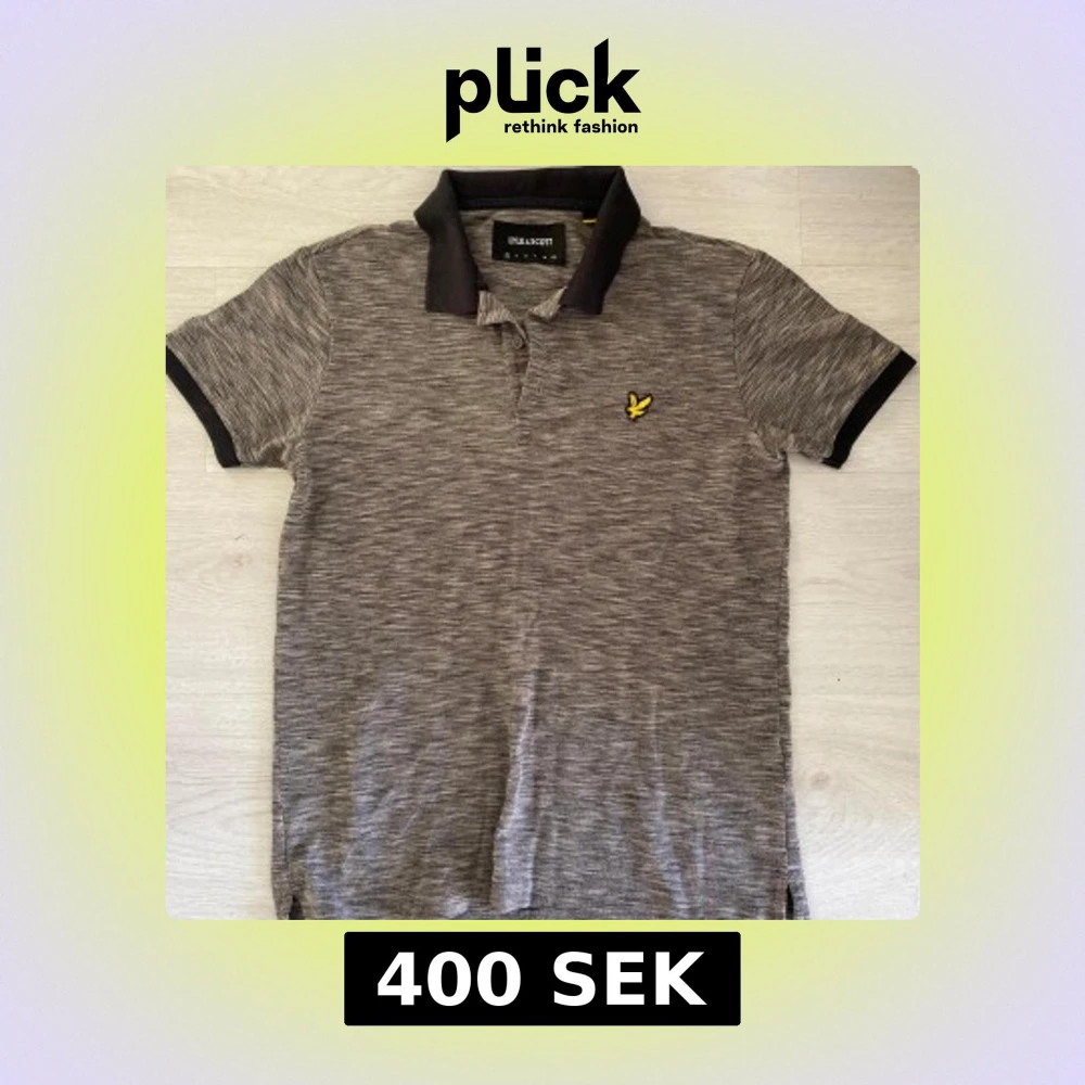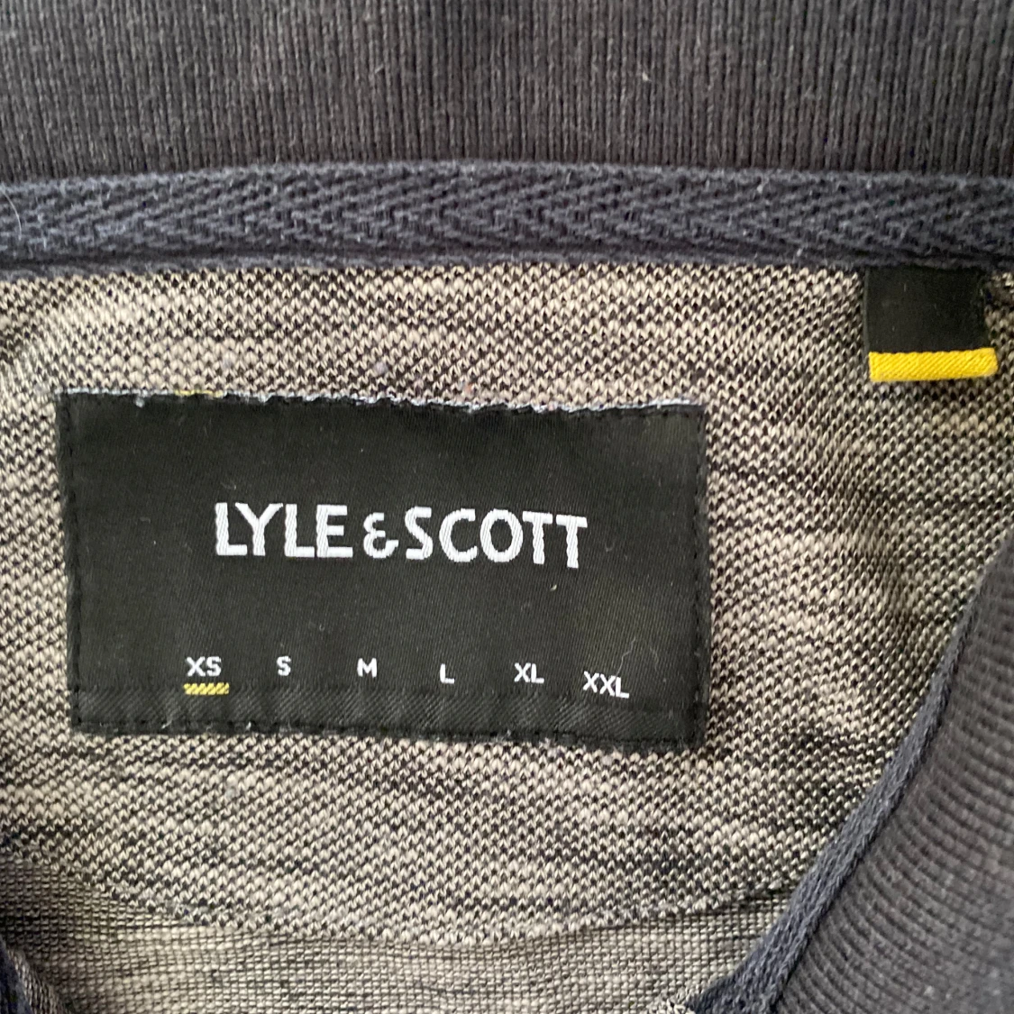 Snygg gråmelerad pikétröja från Lyle & Scott med svart krage och ärmslut. Klassisk gul logga på bröstet och knäppning framtill. Perfekt för en stilren och avslappnad look.