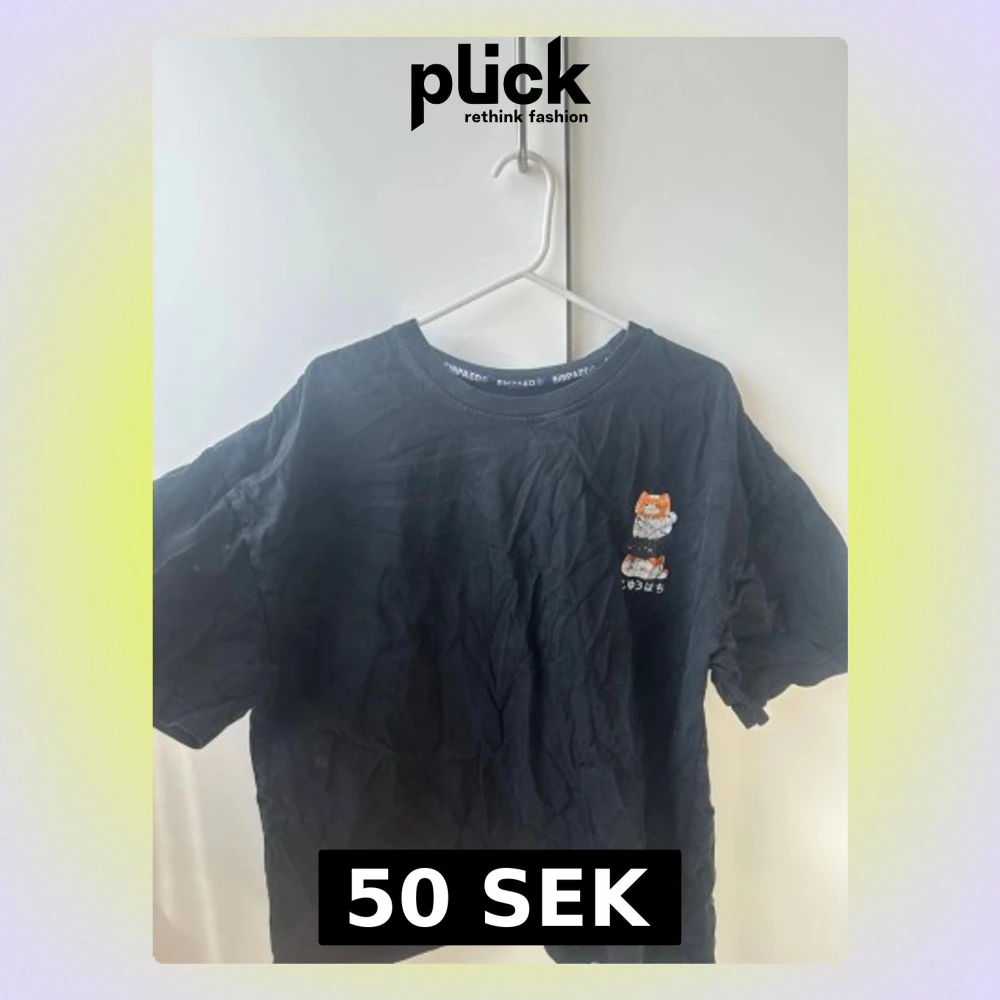 Svart t-shirt med gulligt tryck av tecknade katter på bröstet och ryggen. Texten 'nature's way of melting your heart' på baksidan. Rund halsringning och korta ärmar. Perfekt för dig som älskar söta motiv och vill ha en chill stil.