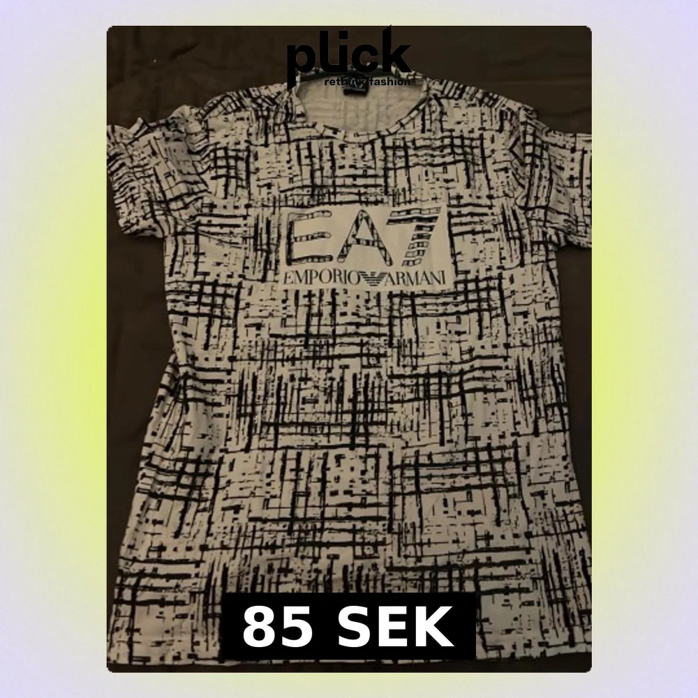 Säljer en vit och svart t-shirt från EA7 Emporio Armani med ett grafiskt rutigt mönster över hela plagget. Tröjan är storlek S/M passar M mer men funkar oxå för S. Stor logga framtill. Klassisk rund hals och korta ärmar. Perfekt nu innan sommaren. Några frågor eller funderingar är det bara att höra av sig :)