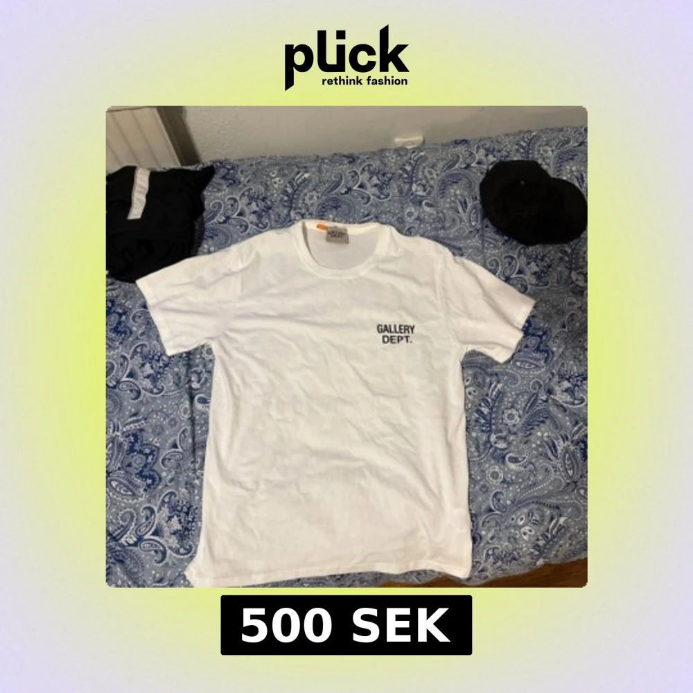 Vit t-shirt från Gallery Dept. med svart tryck på bröstet och stor text på ryggen. Klassisk passform och rund halsringning. Tillverkad i mjuk bomull, perfekt för en clean och stilren look.