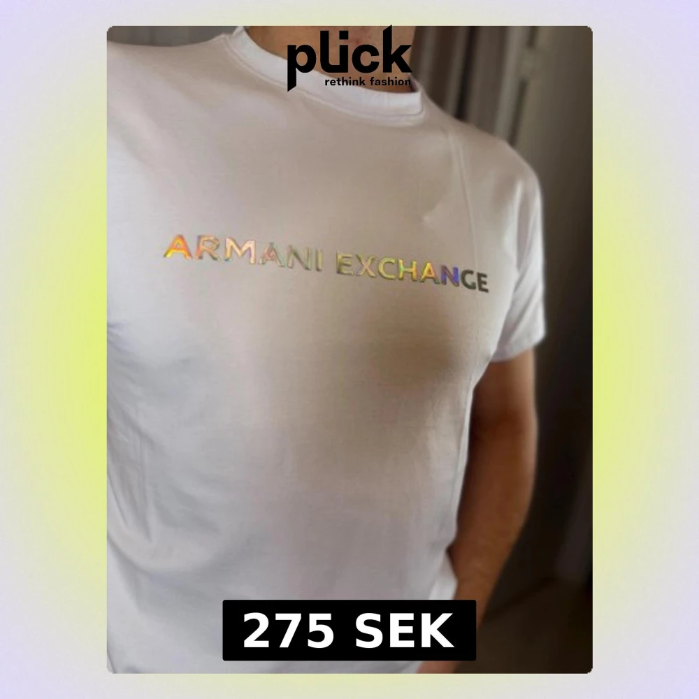 Snygg vit t-shirt från Armani Exchange med holografiskt tryck över bröstet. Klassisk rund hals och korta ärmar. Tillverkad i mjuk bomull som känns skön mot huden. Perfekt för dig som vill ha en clean look med en twist.
