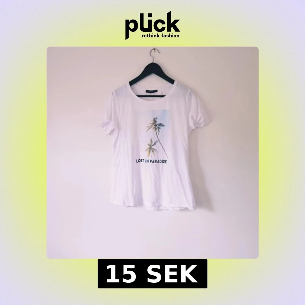 Vit t-shirt från Pine Ridge med tryck av palmer och texten 'LOST IN PARADISE' på framsidan. Klassisk rund halsringning och korta ärmar. Skön och lätt i bomull, perfekt för en chill sommarlook. Helt & fint skick
