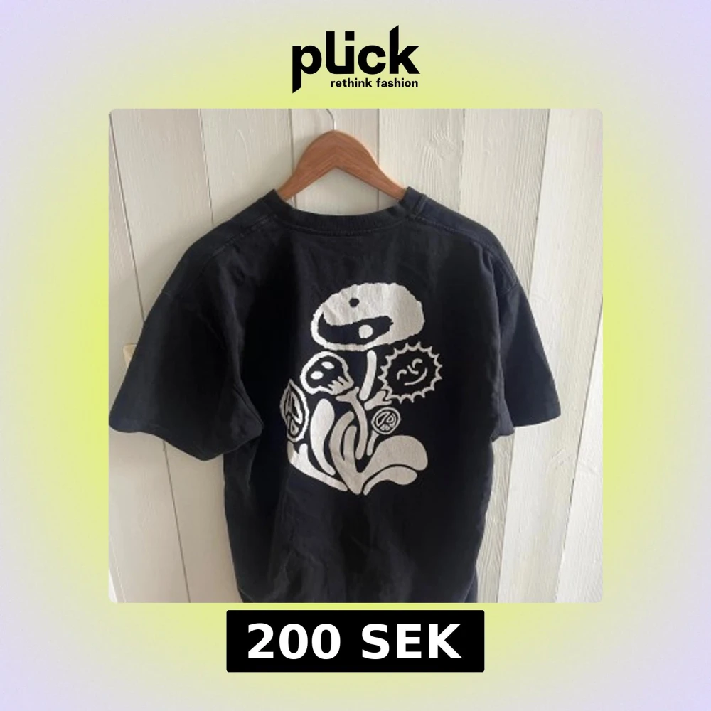Säljer en svart t-shirt från Polar med ett coolt vitt tryck av en blomma på baksidan och Polar-loggan på framsidan. T-shirten är kortärmad och perfekt för en avslappnad stil. Skön och stilren design!