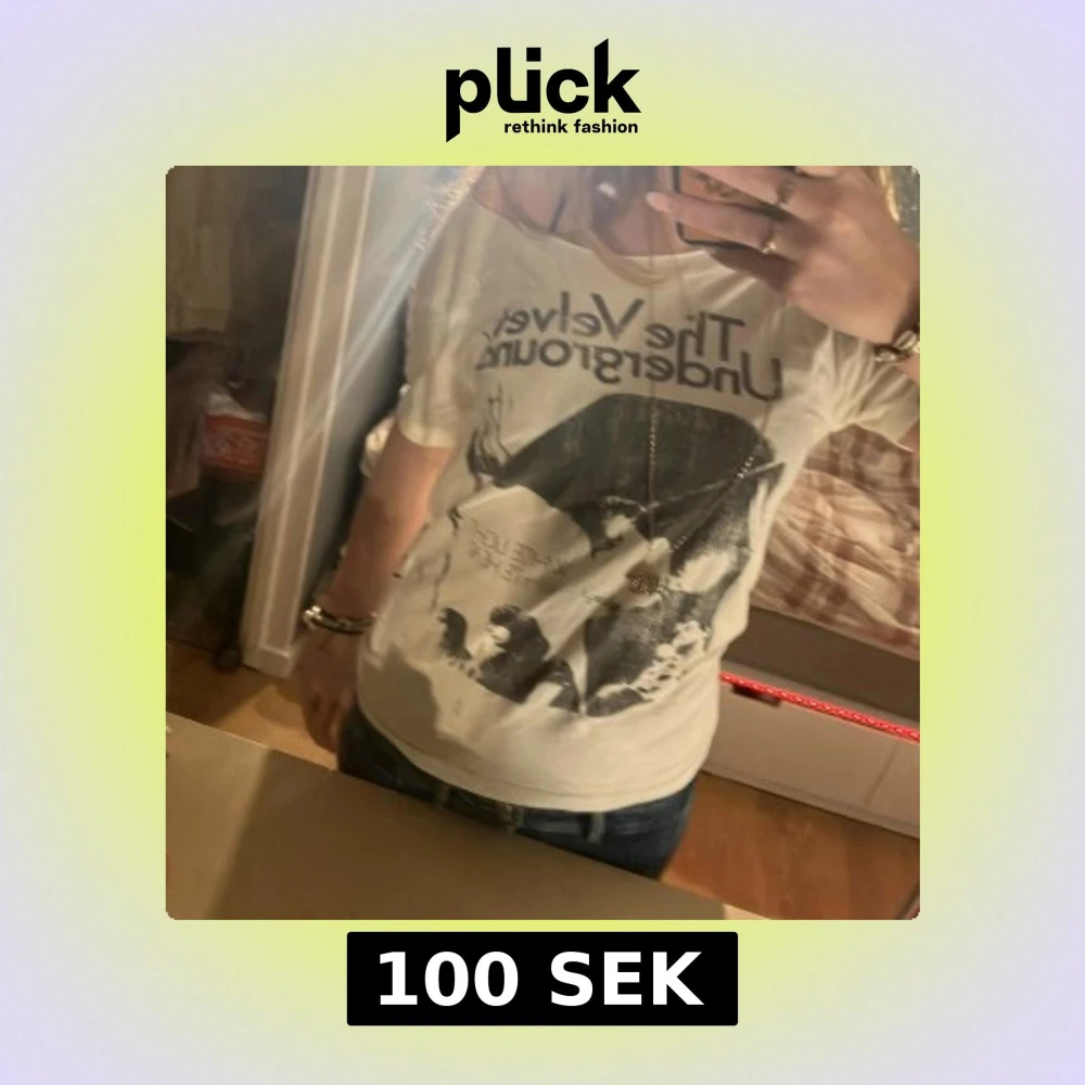 Säljer en vit t-shirt med ett coolt tryck av The Velvet Underground. Perfekt för musikälskare som vill ha en unik stil. T-shirten har korta ärmar och en normal passform.
