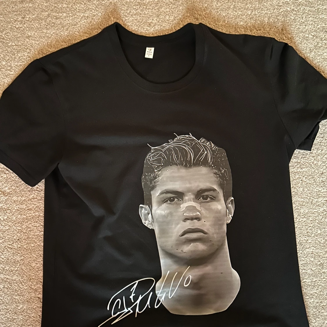 Det är en svart Cr7 tröja, med bra tryck och oanvänd. En perfekt present för din, kille, bror eller kompis.