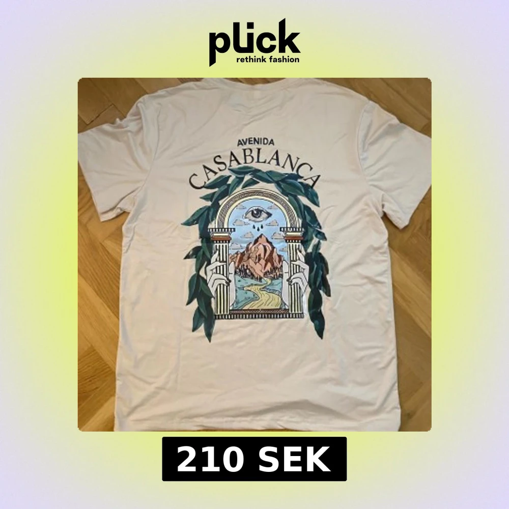 Säljer en vit t-shirt från Casablanca med coolt grafiskt tryck på både bröstet och ryggen. SAMMA DAG DU KÖPER SAMMA DAG JAG FRAKTAR